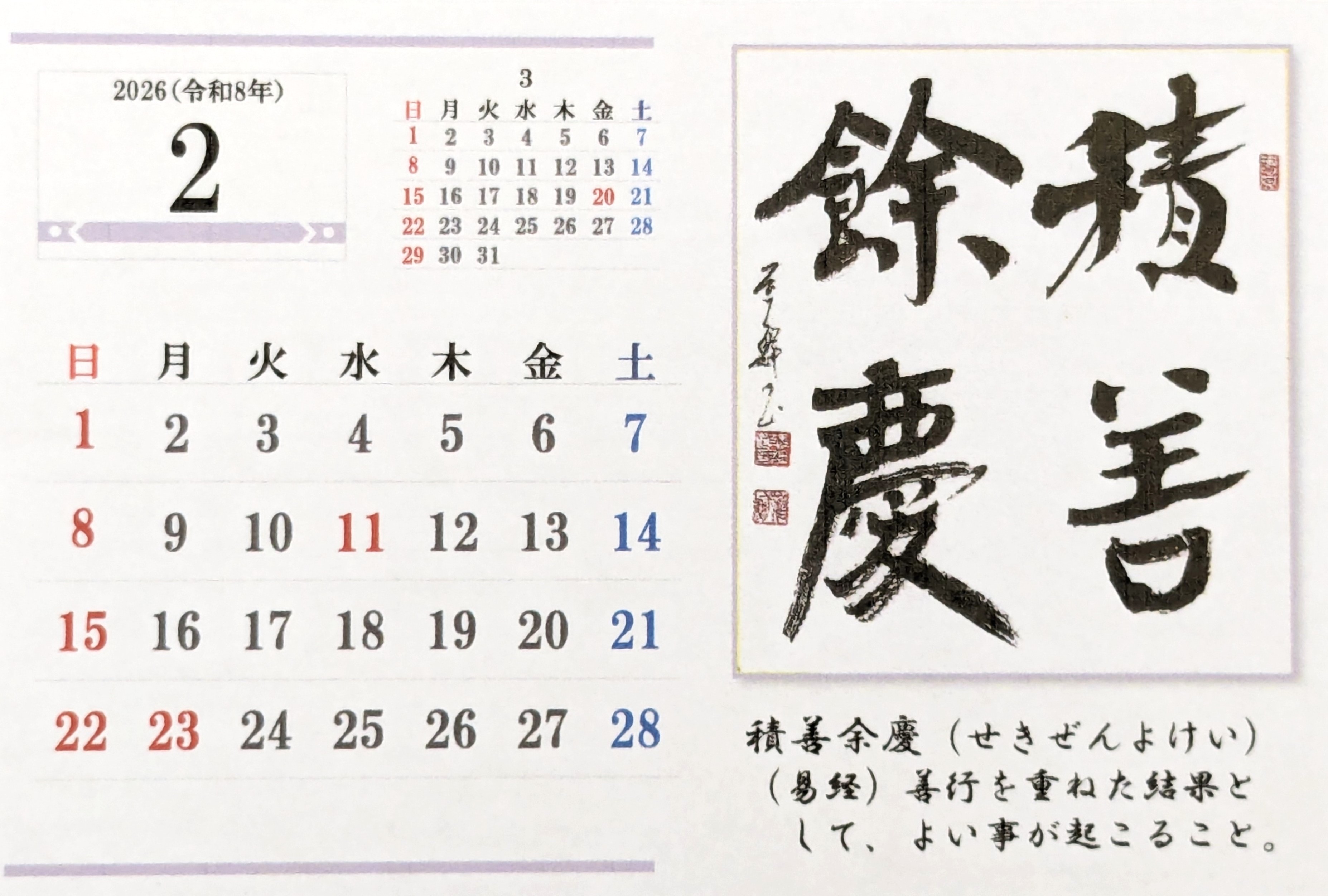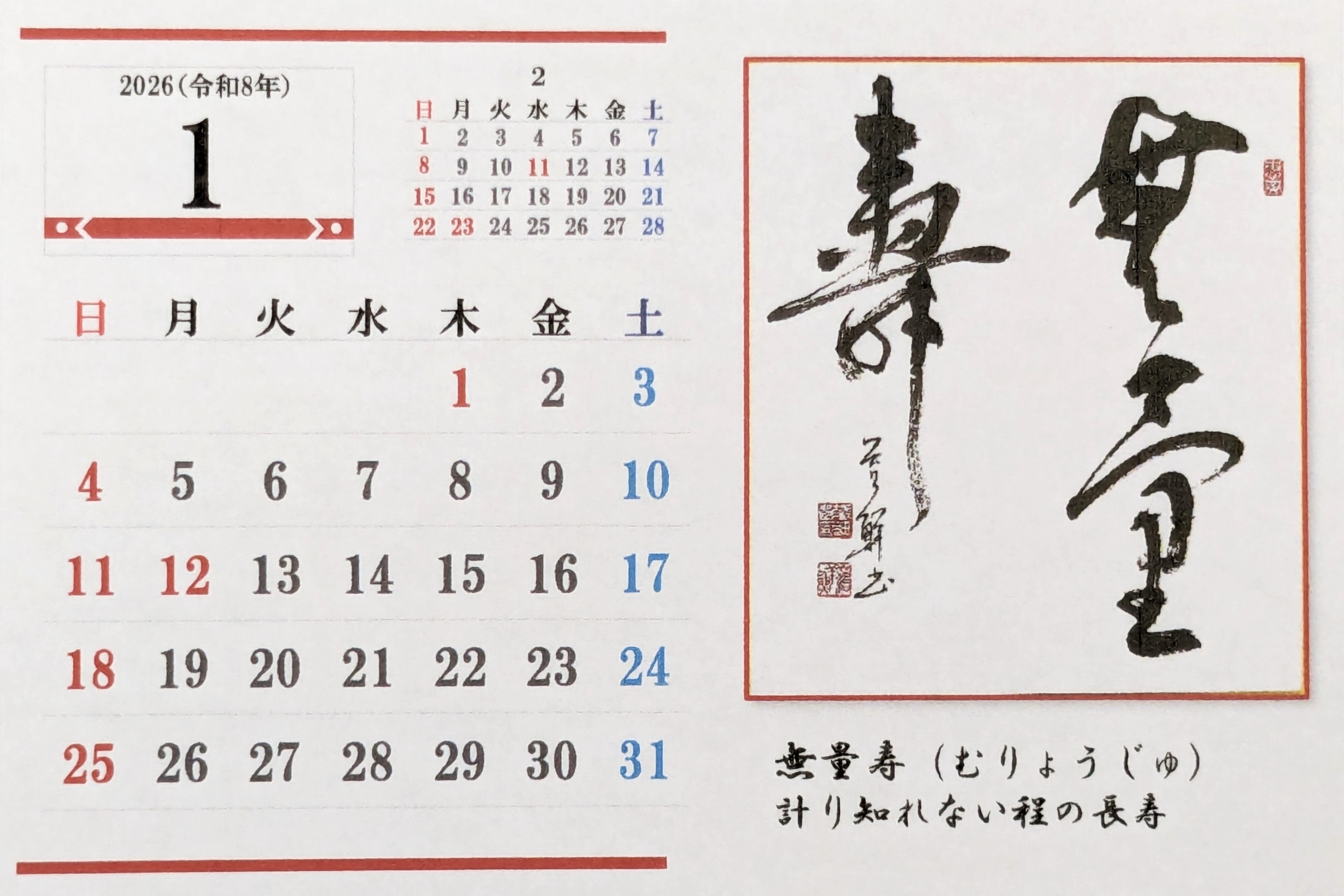 令和8年 卓上カレンダーができました。